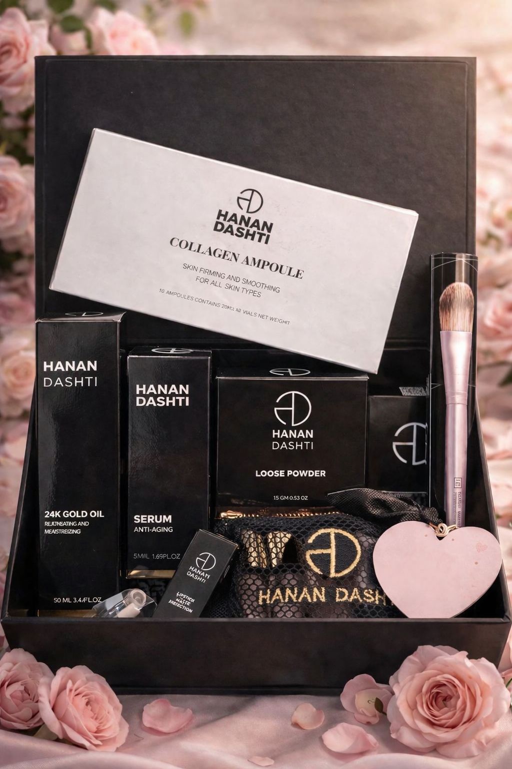 Enjoy our exclusive Mother’s Day Bundle — a curated collection of beauty essentials to make her shine. The bundle consists of Loose Powder #17, Mini Foundation Set, Secret Blush 2, Foundation Brush, Lipstick Soft Flirt, Anti-Aging Serum, 24K Gold Oil Flakes and Collagen Ampoules.